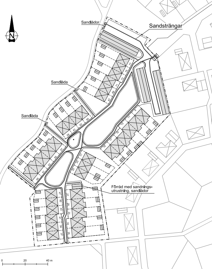 Alla husägare ska delta i skötsel av området enligt allmänna samfällighetsstadgar. Detta innefattar underhåll av grönytor, vägar, garage, p-platser, planteringar, förråd mm.